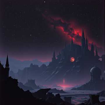Dark gangsta rap fused with deep galactic gothic industrial space opera, aggressive deep alien male rap voice slightly buried and distant in the mix, vocals subdued under vast cosmic layers, dominant heavy industrial beats with crushing 808s, metallic clanging space station percussion, expansive eerie gothic synth pads swirling like nebulae, cosmic ambient drones and stellar winds, cold infinite galactic reverb and echoes, distorted alien signals, mechanical void noises, unsettling creepy intro with low cosmic hum and distant stellar explosions, dramatic intense outro with layered distorted chaos fading into infinite black void, no clean vocals