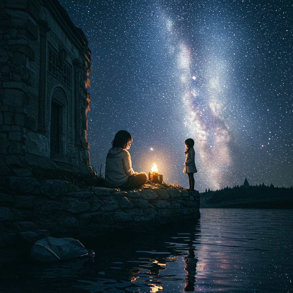 This 80 BPM minimalist Amapiano track features light ambient textures and a gentle percussive groove, Sparse log drums, soft atmospheric pads, and whispering synths create a spacious, dreamy, and tranquil space, The delicate falsetto of a Japanese female vocalist creates a gentle, dreamy, and slightly comical picture-book-like atmosphere, evoking a sense of mystery, innocence, and starlight shining down on the desert