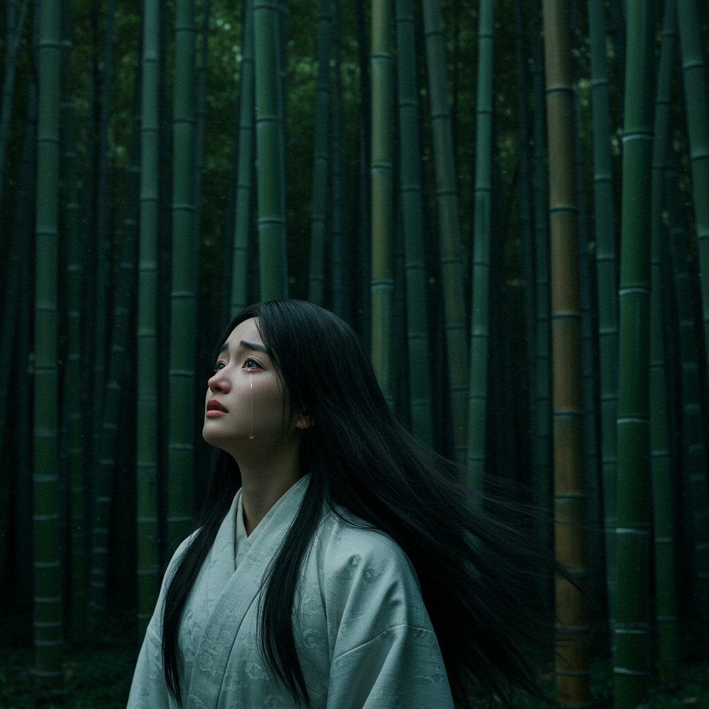 Japanese epic ballad with orchestral arrangement, Female vocal, Starts softly with ambient piano and strings, gradually building into a dramatic and emotional climax, Inspired by the story of Princess Kaguya, Beautiful, lyrical, sorrowful and grand, Epic, Cinematic, Orchestral, Japanese, Emotional, Female Vocal, Ballad