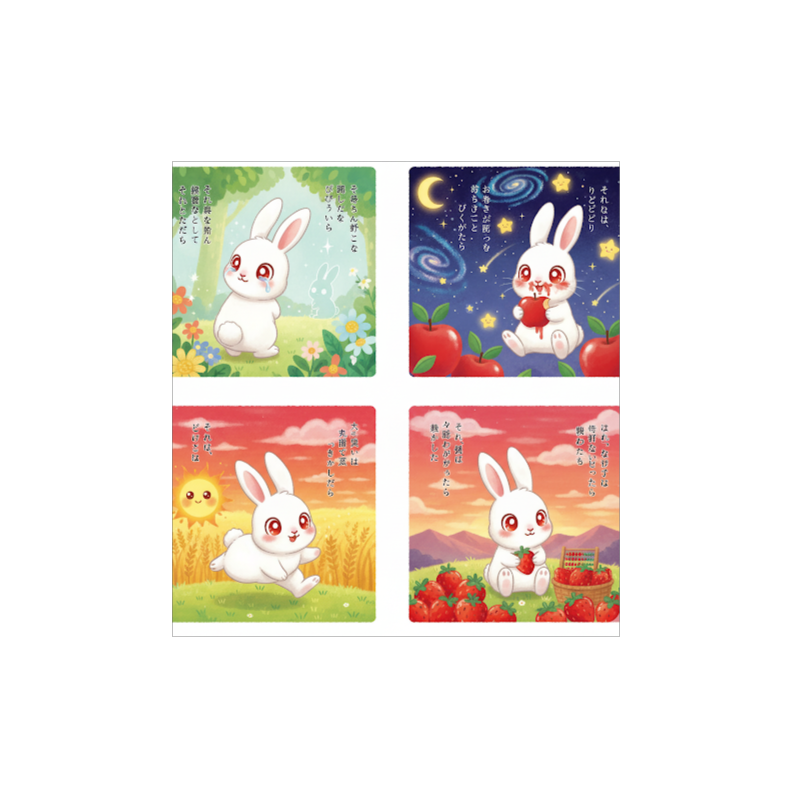 japanese sonng, The intro starts with the sound of winding a music box, and then the music box begins, Picture book reading, A nursery rhyme-like melody, A relaxed tempo, Music Box Melody