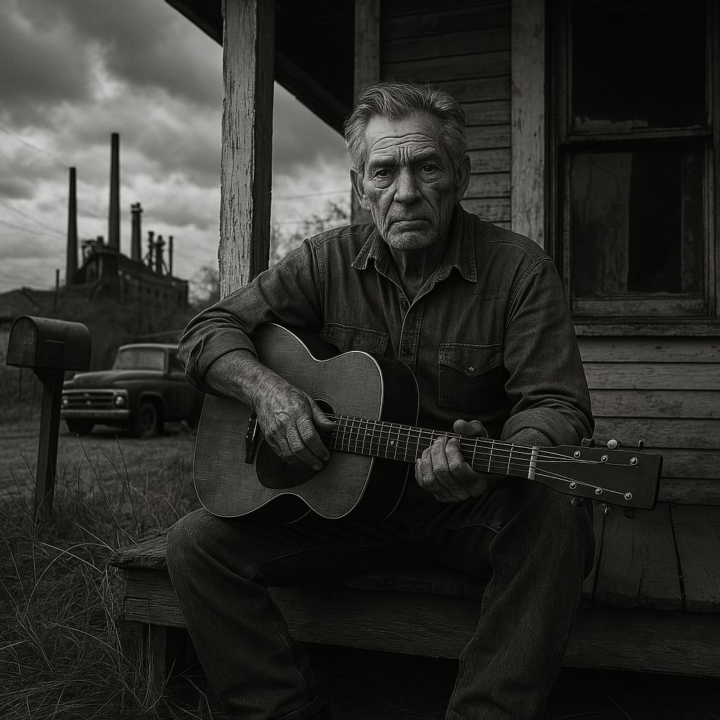 Create traditional country song in Johnny Cash's style, Deep, resonant bass gritty male vocals with slight vibrato, Simple acoustic guitar with boom-chicka-boom rhythm pattern, Minimal instrumentation - acoustic guitar, upright bass, subtle drums, Tempo around 100 BPM, Raw, authentic production like 'American Recordings' era, Themes of hard work, redemption, and dignity, No fancy production - just honest, powerful delivery, Include train rhythm feel and that distinctive Cash vocal style - deep, weathered, and full of gravitas, "