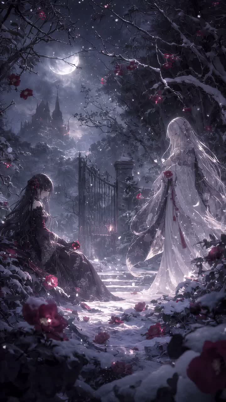 Gothic visual-kei power melodic metal fused with restrained nuevo tango, Dual female vocals: lyrical soprano and dark contralto, alternating lines and occasional interwoven duet passages, Prominent bandoneon lead melody and tango phrasing, low strings supporting atmosphere, Distorted electric guitars delivering power melodic metal harmonies and soaring leads, tight metal drums with subtle tango syncopation, Cinematic gothic romantic mood, Japanese poetic melancholy with European castle ambience, Dynamics building to passionate metal climax, resolving into quiet outro, Modern high-fidelity studio production, pristine recording quality, ultra-clean mix and master, cinematic dynamic range, detailed stereo imaging, wide soundstage, tight low-end and polished high frequencies, powerful but controlled drum mix, clear vocal presence with high-resolution reverb tails, lush cathedral-style reverb