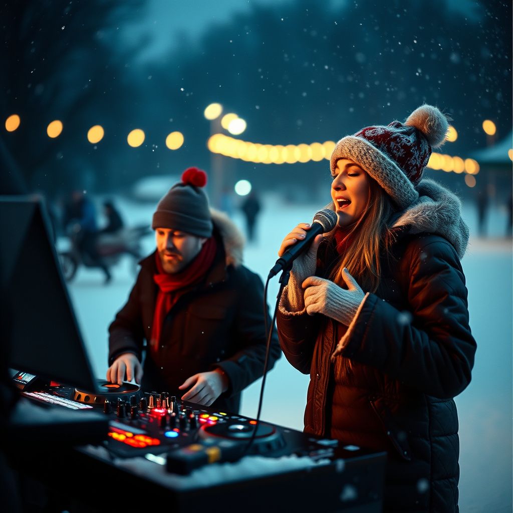 Melodic house / EDM Christmas track, warm emotional vibe, deep bass, sidechained synths, melodic lead, soft vocal chops, festive bells, modern club production, uplifting and cozy winter atmosphere, male vocals