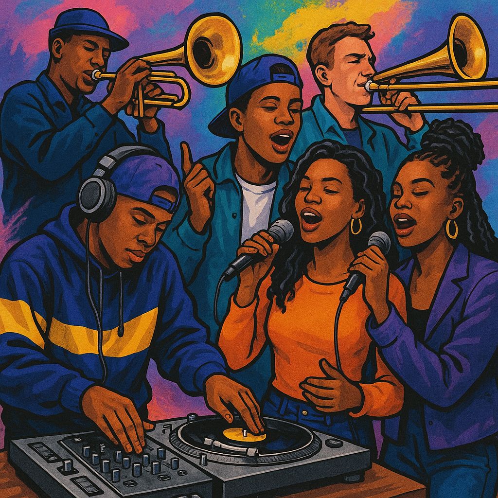 90’s Eurodance, house-pop, summer anthem, Female powerhouse lead (diva-style), layered harmonies in chorus, male spoken/rapped interlude, Punchy 4/4 beat, bright synth stabs, deep bassline, string pads, dance piano riffs, Euphoric, energetic, summer night magic