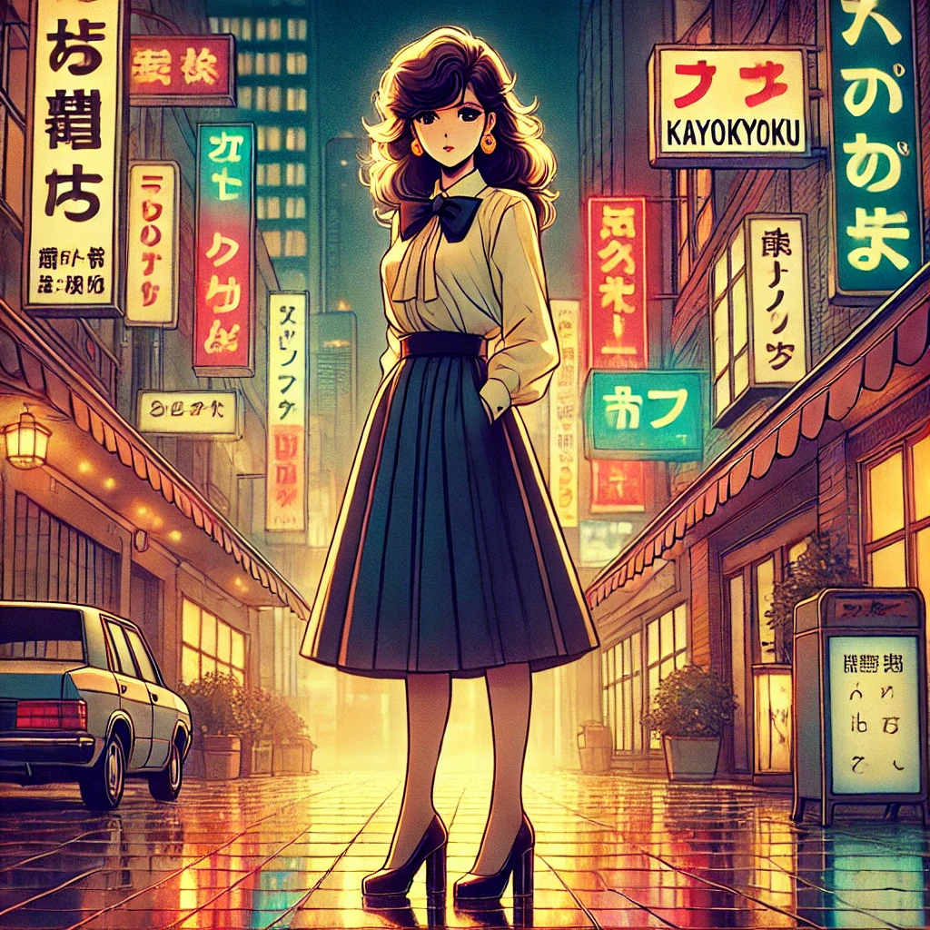 This J-pop track fuses new jack swing rhythms, electrofunk bass, and lush new wave synths, layered with glockenspiel accents, Syncopated drum machines drive a groovy, sensual pulse while soulful, melodic lines and electronic textures swirl in A minor for a melancholic yet sultry dance-pop vibe