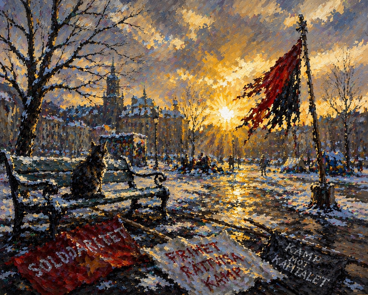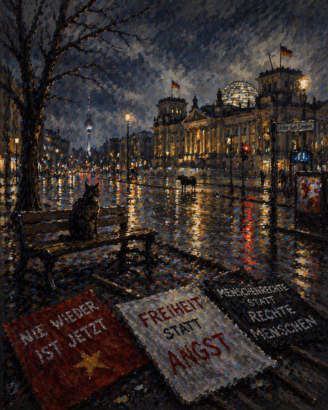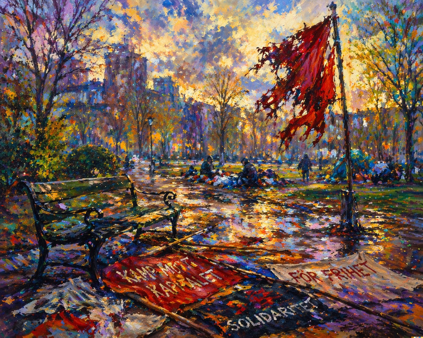 Grit-heavy acoustic folk in 3/4 with a rough, smoker's baritone lead pushed aggressively forward, close-mic breath and gravel emphasized, The vocal carries cracked edges, heavy chest tone, and worn, late-night phrasing, like a protest singer at closing time, Steel-string acoustic guitar drives a raw waltz groove with harder-struck bass notes, occasional rasgueado bursts, dissonant hammer-ons, and scraped slides for texture, Added variation through subtle tempo pushes and pulls, whispered backing phrases, and low, humming vocal doubles in key lines, Production is saturated and tape-worn with gritty midrange, roomy club ambience, and occasional overloaded transients that give a live, on-the-brink energy