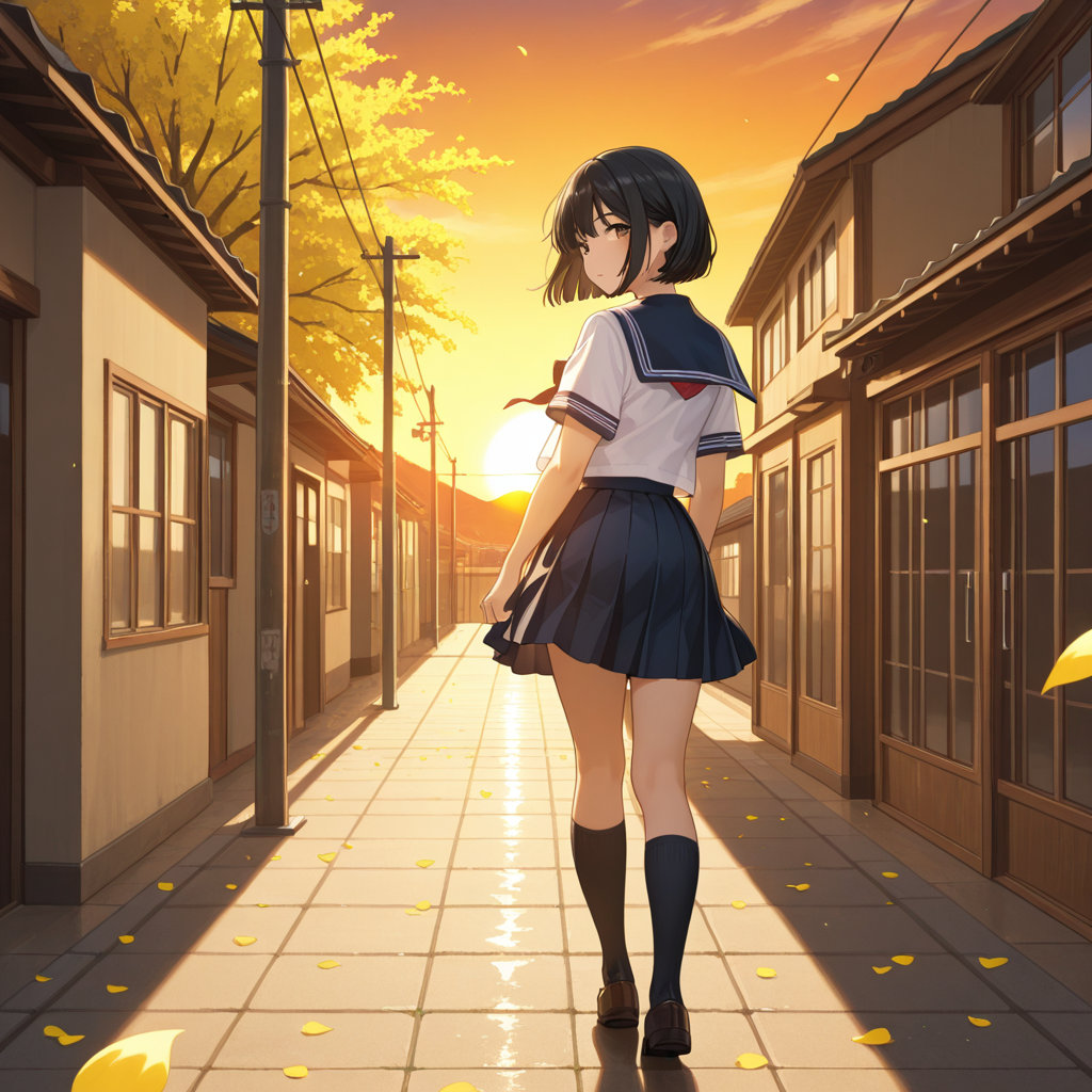 Autumn dusk-to-night cinematic lo-fi pop, 84 BPM, minor key, faint vinyl air, soft sub-bass, very restrained brushed kit (no busy hats), Main hook: broken music box motif (gentle, nostalgic, not creepy), Add tiny distant city ambience: soft footsteps, far train, one crossing bell far away, No heavy glitch, no math-rock, no EDM drop, no big build; dynamics stay intimate, Intro 8 bars: near-silence dusk ambience (faint wind), At bar 4: ONE single high music-box note (only once), with a soft reverb tail, Bars 5–8: tiny distant crossing bell and 2–4 very quiet rim clicks to lead into Verse, No vocals in intro, Structure: Intro → Verse intimate → Refrain slightly wider with thin strings shimmer → Bridge nearly silent → final refrain fades into night, Vocal: very young girl, close-mic, fragile whisper-singing (almost spoken but lightly melodic), clear Japanese diction, no belting, no vibrato, no shouting