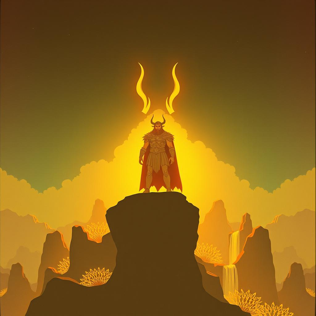 This 5-minute symphonic heavy metal epic opens with swelling strings, bold brass, viking horns blowing and drums marching, Thunderous drums and Nordic-tinged guitars crash into a driving verse, Soaring male vocals rise over primal percussion in the middle, A furious drop unleashes slow and heavy marching drums with heavy tremolo guitars, An electrifying guitar solo pushes the piece to a cinematic crescendo, then all forces combine—full orchestra, guttural harmonies, and pummeling guitars—for a slow-burning, majestic finale powered by monumental drums and a heavy guitar finale, make the choral truly epic with a booming, thunderous voice