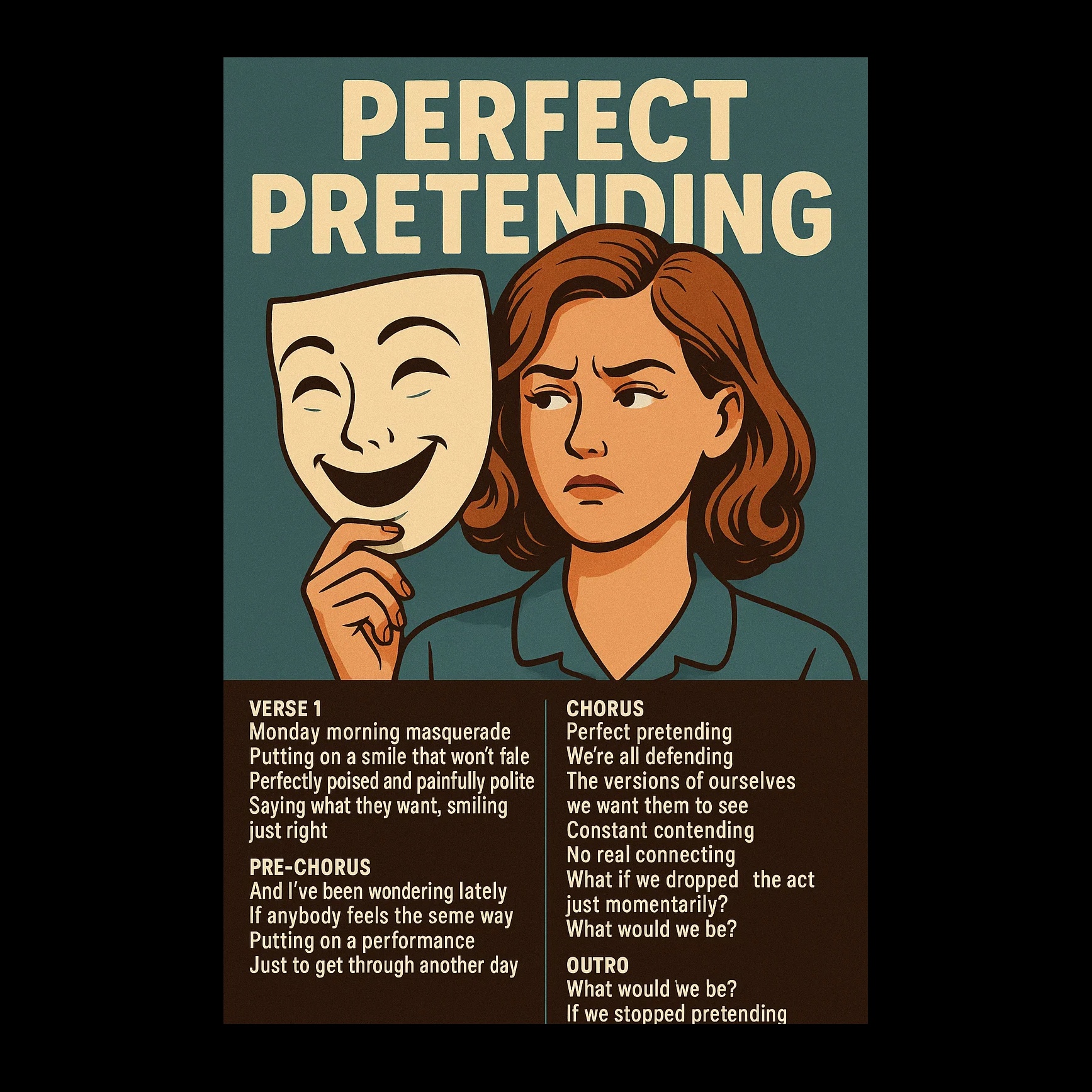 Thoughtful blues-pop with layered metaphors, Melodic vocals, dynamic guitar work, subtle groove, ‑Heavy metal, ‑EDM, ‑punk, ‑rap, ‑country, ‑classical, ‑grunge, ‑trap