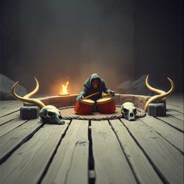 crazy growling, breating, krr grr, primitive deep, raspy rough neanderthal voice, deep and raspy voice, bad language, bad rhytm, psycho in the start, barely understandable, bad, only krr-krr roarrr, singing gets better, like a animal, breathing, growl, Primitive Neanderthal ritual music, only war drums, wood and stone percussion, hand hits, stomps — no guitars, no melody instruments, First third of the song: no singing at all, Vocals are animalistic, low-IQ, broken speech and noise: heavy breathing, grunting, growls, stammering, mouth sounds, screaming fragments, Simple one-line phrases about raw violence, blood, exhaustion, “i win”, spoken or shouted badly, constantly interrupted by breathing and noises, Mid section: curiosity about sound, rough humming, unstable tones, rhythmic still imperfect, Final section: simple primitive singing emerges, warm feeling, voice feels good, skills slowly improve, Mood: brutal → tired of violence → discovering voice, Raw, imperfect, physical, ritualistic