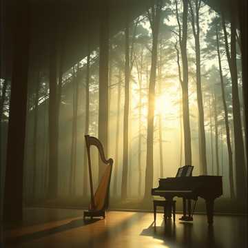 Compose a cinematic orchestral waltz inspired Use 3/4 time, C Major, and 72 BPM, Begin with a soft piano and harp melody, expressing wonder and childlike curiosity, In the second part, introduce subtle woodwinds and strings with flowing harmonies, adding a mysterious, dreamlike atmosphere, Gradually build the third section with deeper strings, French horns, and emotional tension, reflecting inner conflict and growth, Conclude with a powerful orchestral climax—full strings, brass, timpani—resolving the melody into warmth and hope, End with a soft return to piano and harp, gently fading into peace