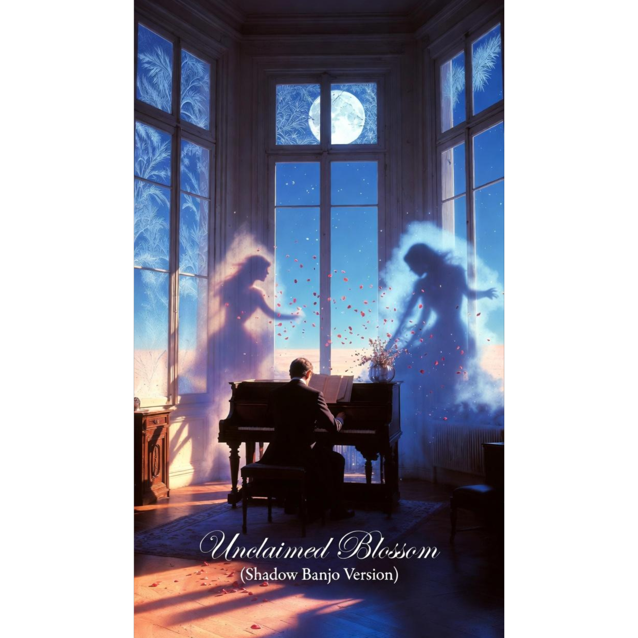 hybrid 50/50 fusion: early romantic intimacy meets vibrant country-blues drive and dark 80s gothic/dark wave cinematic atmosphere, luminous translucent female soprano with haunting intimate aching depth, subtle folk harmonies + ethereal whispered layers, subtle 80s reverb, fortepiano delicate arpeggios intertwined with fast intricate banjo, crisp acoustic guitar, upright bass groove, intermittent fiddle flourishes, mournful guitar lines, deep reverb-drenched synths, heavy pulsing bass, subtle modern dubstep undercurrents, lush orchestral strings, muted/mournful trumpet accents, harmonica soulful weaves, sparse distant whistling evolving to cinematic percussion, rhythmic handclaps western vibe, melancholic yearning bittersweet tragic love mood, moderato ~80 BPM, high quality throughout, pristine high-fidelity audio, consistent mixing no degradation at the end, no distortion in final section, polished studio recording, well-balanced acoustic-electronic mix, ‑male vocals, ‑fast tempo, ‑modern pop, ‑rock elements, ‑heavy drums, ‑bright pads, ‑innocent vibe, ‑acoustic folk only, ‑jazz, ‑lo-fi chill, ‑cheerful delivery, ‑background noise, ‑static, ‑hiss, ‑shimmer overload, ‑clicks, ‑pops, ‑unwanted reverb tails, ‑breathing artifacts, ‑intro humming, ‑oh oh ah ah ad-libs, ‑scatting, ‑melodic fills at beginning, ‑distortion, ‑muddy low-end, ‑low fidelity, ‑tape warble, ‑vinyl pops