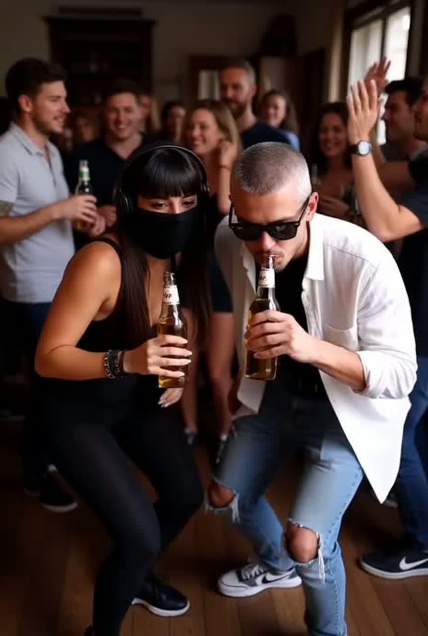 Live-band funk groove with slapped bass, tight drums, and bright rhythm guitar scratches, Horn stabs answer the vocal phrases, male vocals riding a playful, laid-back swing, Big gang shouts on the hook, call-and-response ad-libs, and a brief talkbox-style breakdown on the bridge, Warm room reverb, crowd feel, like a sweaty bar jam caught on tape, funky