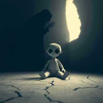 Thunderous downtuned guitars drive a heavy, aggressive nu metal groove, layered with syncopated rhythms and industrial percussion, Verses feature haunted whispers over minimal instrumentation and unsettling toy-like melodies, bursting into anguished screams and dense guitar textures in the chorus, radiating dark childlike unease, ‑Clean singing, ‑pop, ‑autotune, ‑EDM, ‑acoustic, ‑stable pitch, ‑high screams, ‑black/death metal shrieks, ‑power metal, ‑anthemic shouts, ‑overproduced vocals, ‑R&B, ‑rap, ‑spoken word, ‑radio-friendly