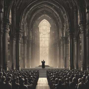 Orchestral symphonic, black metal, D minor, catchy chorus sung, verse spoken, deep solemn voice, recited poetry, whispered or shouted, choir, orchestral instrumental, ritualistic, black mass, melancholic, hypnotic, oppressive, spiritual, tragic, sadness, incantation, dramatic, ‑theatrical vocal, ‑happy, ‑pop, ‑mainstream, ‑radio-friendly, ‑commercial