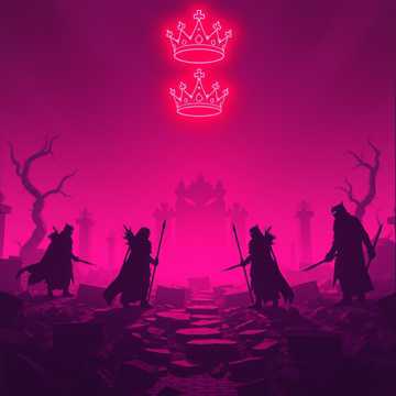 Dark cinematic pop-rock with female vocals, distorted guitars, and ominous choir swells, Verses stay tense and sneering over brooding low strings and toms; chorus explodes with roaring drums, octave synth bass, and stacked gang vocals on the hook, Bridge strips to piano and reverse-reverb vocals, then slams back with towering guitars, orchestral hits, and a triumphant key change for the final chorus, happy