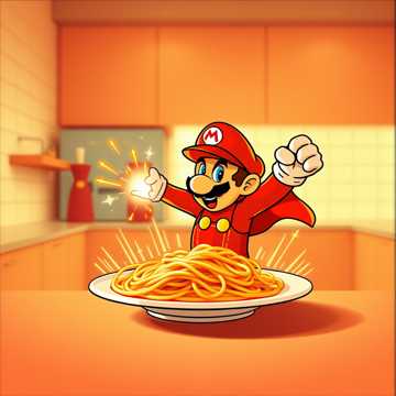 spaghetti power up"is a funz upbeat Mario themed song that focuses on Mario's absolute love for spaghetti, instead of mushrooms or Stars, spaghetti is his true power up, the song leans into cartoon humor, fast energy, and playful bragging, showing Mario at his happiest-covered in sauce, full of noodles, and ready to jump into action, this track sets the tune for the Mario trilogy by introducing his goofy, cheerful side before things get more intense later