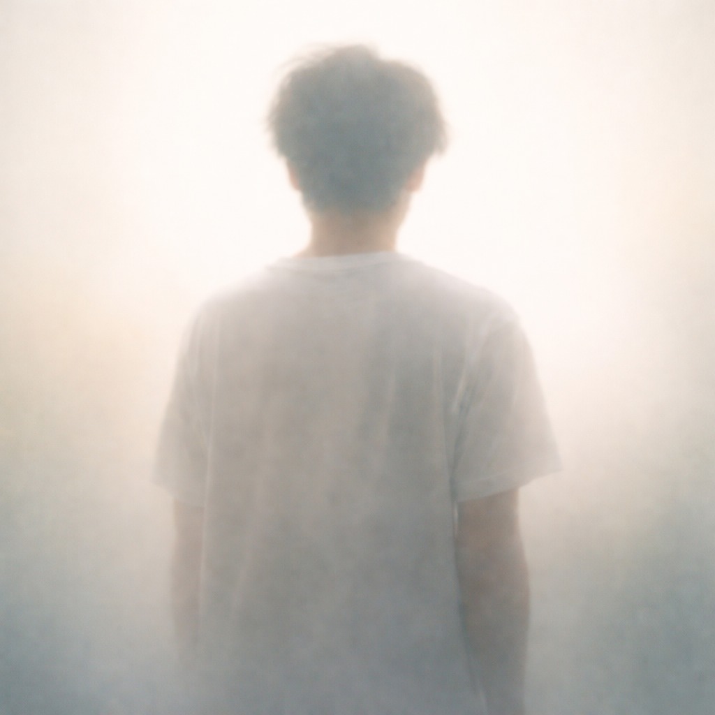 slow emo post-rock, 78 BPM, spacious and emotional arrangement, clean fingerpicked electric guitar with heavy reverb and delay, gradual build with ambient textures and soft pads, minimal bass entering late, drums starting with rim clicks then expanding to full kit in final chorus, dynamic crescendo, male vocal fragile and breathy in verses, slightly strained and emotional in chorus, intimate close-mic recording, natural imperfections preserved, melancholic and introspective mood, no aggressive distortion, wide stereo field, cinematic atmosphere