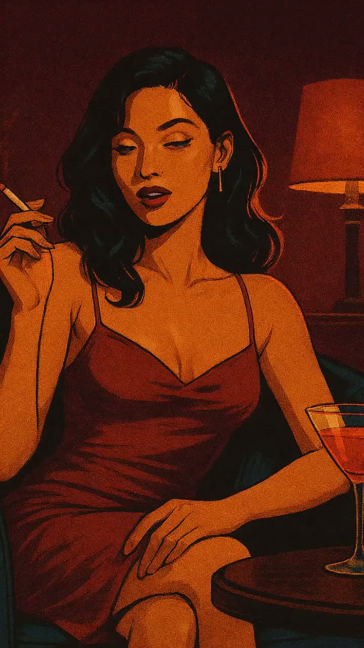 Create a slow, seductive electro-lounge track with a dark, velvety atmosphere, The music should evoke the feeling of a midnight encounter in a luxurious hotel lounge — dim lights, lingering glances, and unspoken tension, Use smoky textures, jazzy minor chords, warm electric piano, and deep, resonant bass, Feature a husky, mature female vocal — breathy, intimate, and teasing in tone, Incorporate ambient pads and subtle glitch elements to create a sense of mystery and slow-burning desire, The mood should be erotic, moody, and hypnotic — like a game played in shadows, where every move feels dangerous and delicious, Style: Dark Electro Lounge × Erotic Jazz Ambient