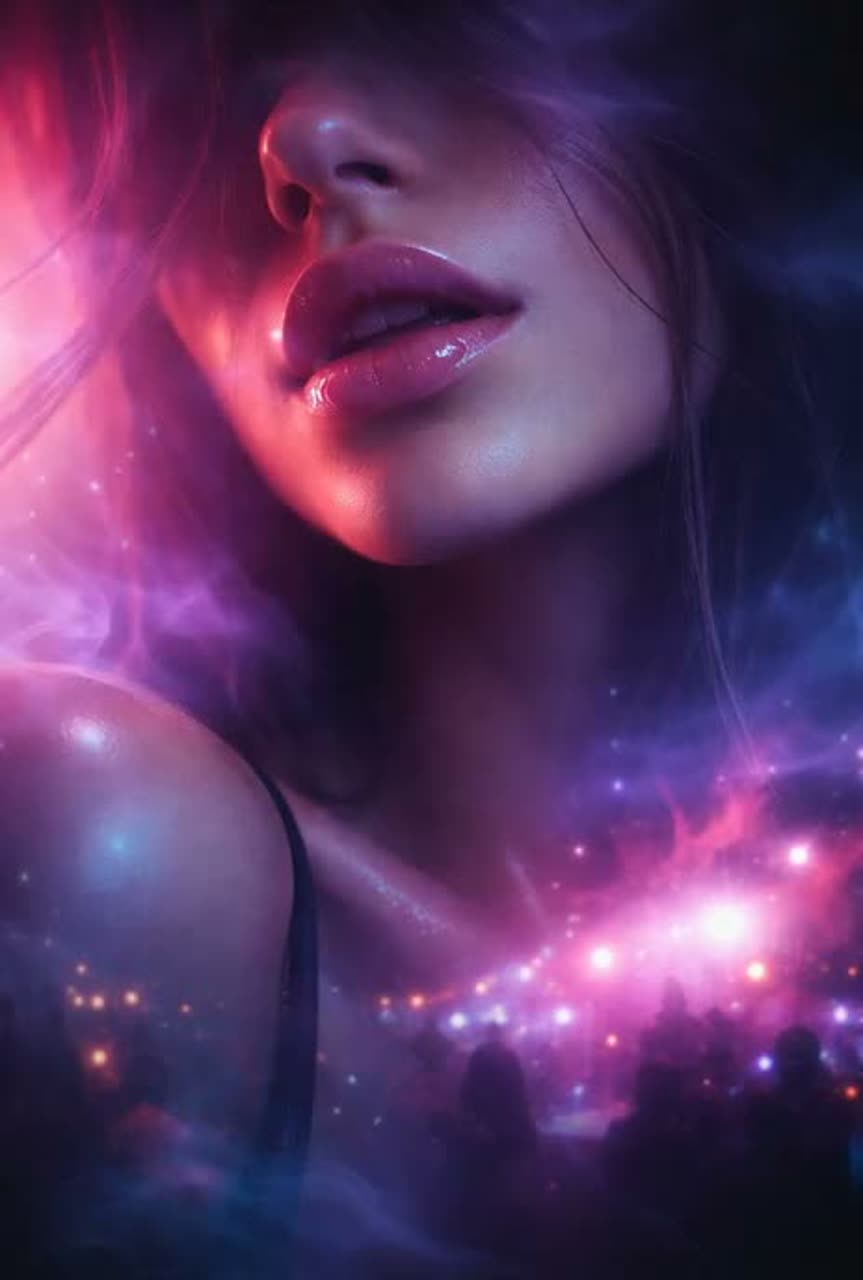 Dream Pop / Ambient, soft floating synth pads, spacious reverb, gentle airy percussion, slow pulsing kick, ethereal vocals with layered harmonies, dreamlike neon lights and starry reflections, ambient textures, calm and floating atmosphere, emphasizes mood and space over rhythm, soft bounces, hypnotic and relaxing, lush soundscape, minimal energetic beats, focus on floating vocals and dreamy atmosphere