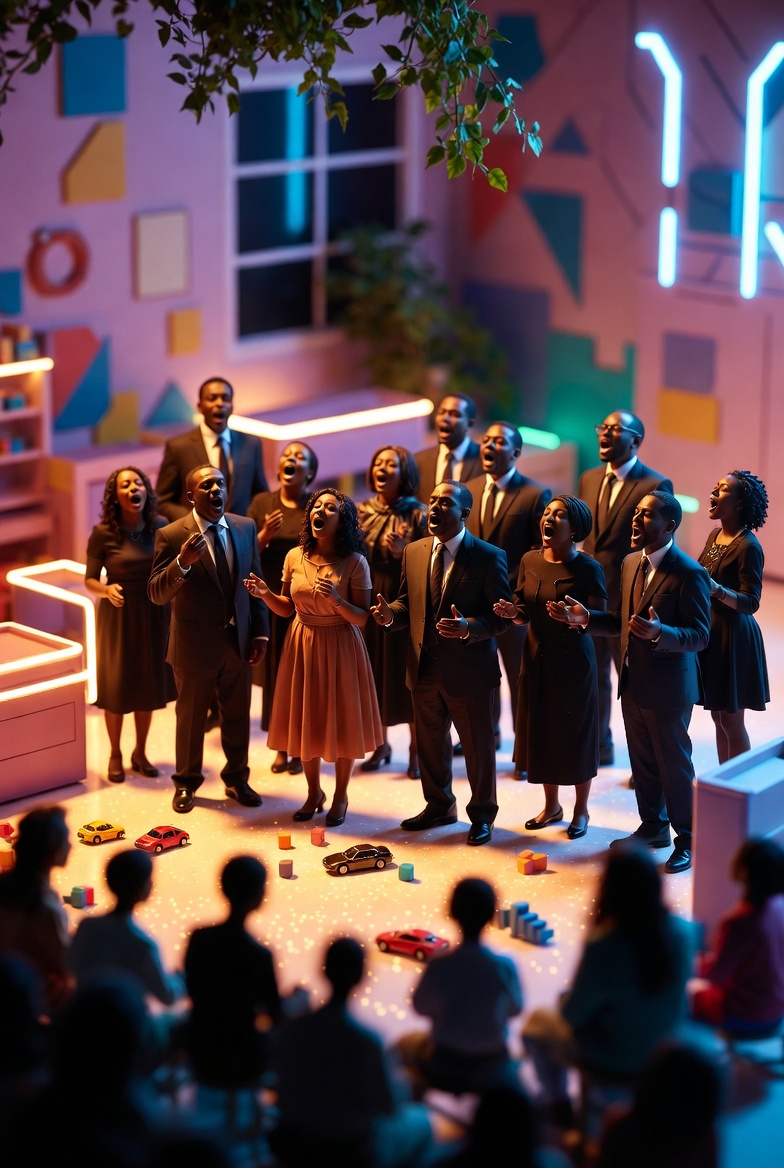 A modern gospel track led by a triumphant piano and swelling organ, anchored by soulful drums and clean bass, Gospel choir takes center stage with rich call-and-response in German, contrasted by glitched, vocoder-tinged lead vocals for a striking textural twist