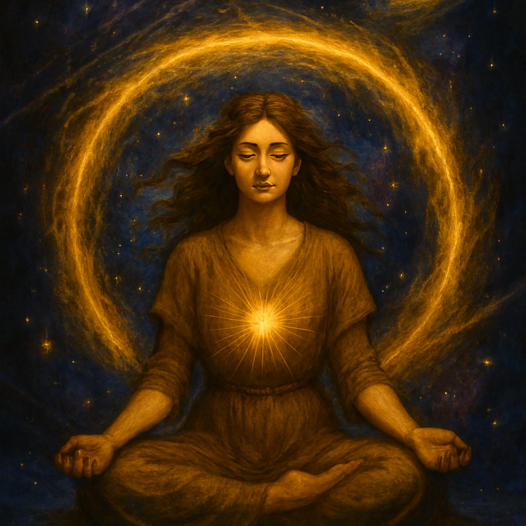 “Canción espiritual devocional con cuencos tibetanos, flauta de bambú, voz femenina suave y atmósfera envolvente, Letra sobre apertura del corazón y vibración amorosa, Estilo meditativo para conexión