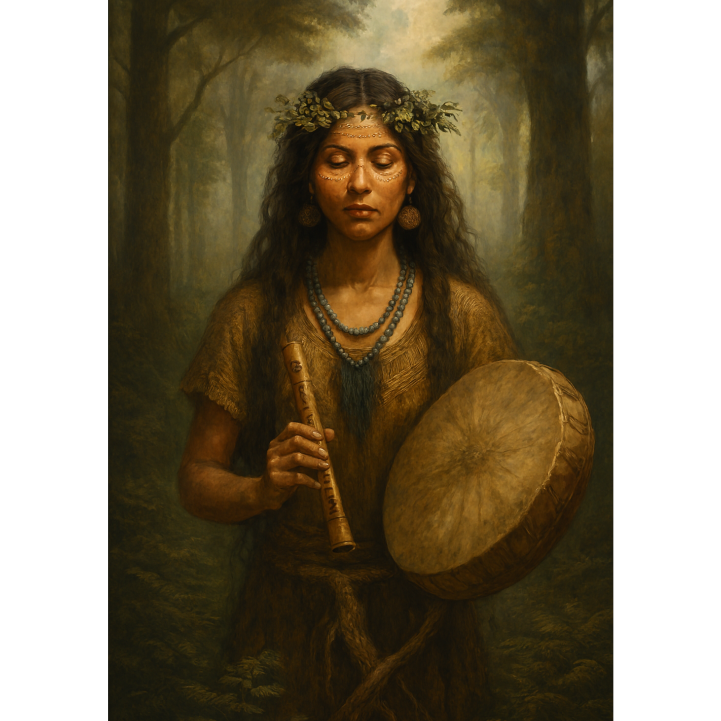 “Música ceremonial con tambores tribales, cantos ancestrales, sonidos de selva y flauta nativa, Ideal para rituales de introspección y sanación espiritual profunda, ”