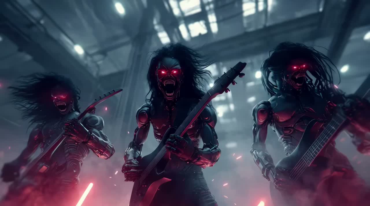 140 BPM, Heavy Metal, NWOBHM, Power Metal, Epic, Aggressive deep vocals, heavily distorted thick guitar riffs and soaring melodic leads, thunderous double-kick drums, deep heavy bass, dark but majestic, No synths, no pads, no orchestra, ‑edm, ‑dance, ‑pop, ‑techno, ‑acid, ‑trance, ‑house, ‑rap, ‑hip hop