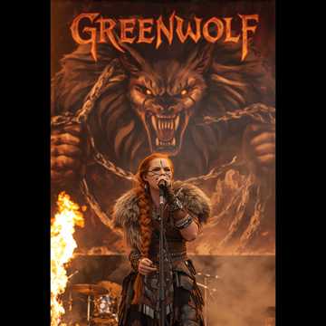 Doom Viking Metal with raw energy, Heavy, crushing riffs with slow doom tempo as foundation, but sudden bursts of speed and groove sections to symbolize rage breaking free, Guitars: thick distortion, low-tuned walls of sound, switching between massive chords and thrash-like bursts, Bass: deep, grinding, animalistic pulse, Drums: martial, heavy doom beats with explosive double-pedal bursts in rage moments, Vocals: female lead (powerful, grave, incantatory), male guttural duet embodying Fenrir’s beast voice, Audience: loud and present, chanting “FENRIR!” and “CHAINS!” in unison, sometimes overpowering the mix, Atmosphere: dark, cosmic, ritualistic, FX: breaking chains, beastly growls, howling winds, deep rumbles, Live intensity with raw stage energy, crowd-driven refrains like invocations, doom heaviness fused with primal fury