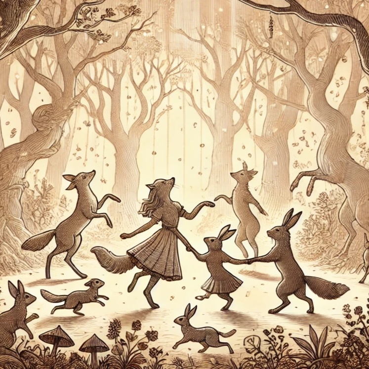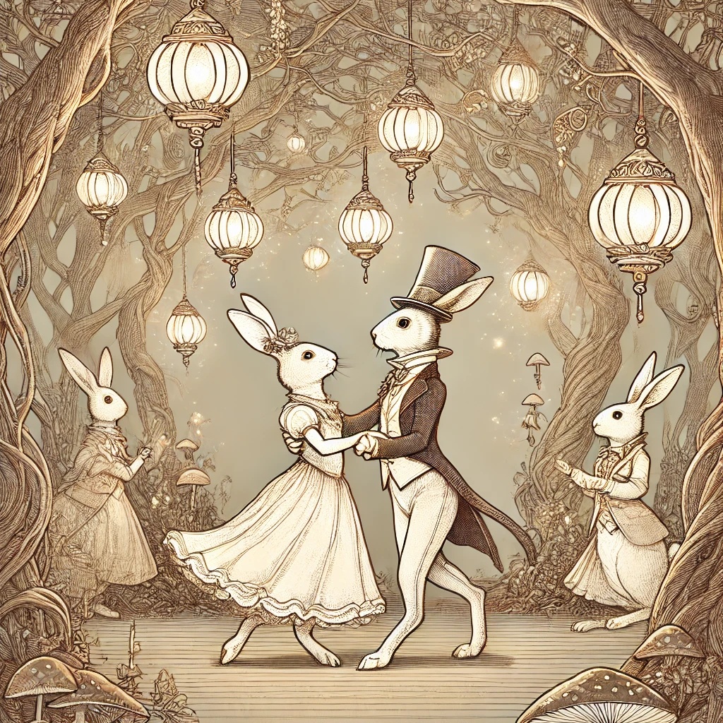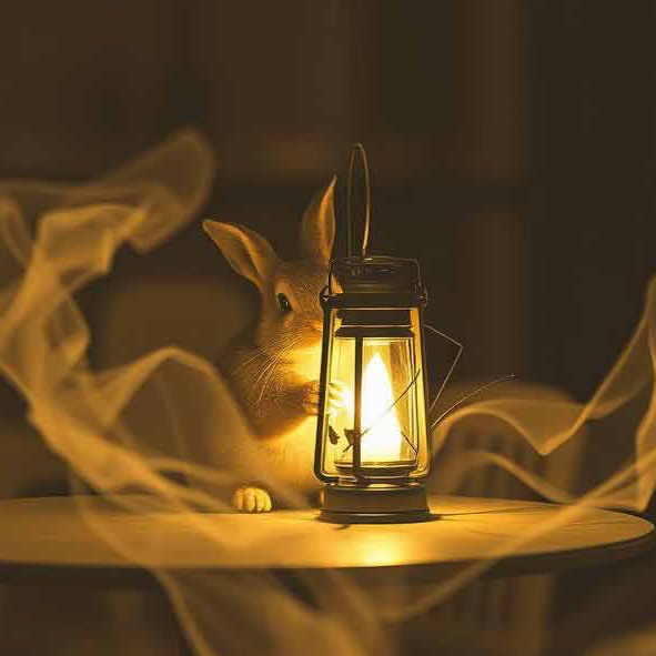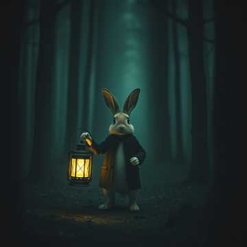Accordion-led cinematic Musette in a minor key, evoking a dim forest, A curious boy wanders into the woods, guided by a butler-like rabbit holding a lantern, Mysterious, whimsical, and slightly eerie, Odd meter rhythm (5/4 or 7/8) to create an unsettling but magical atmosphere, ”
