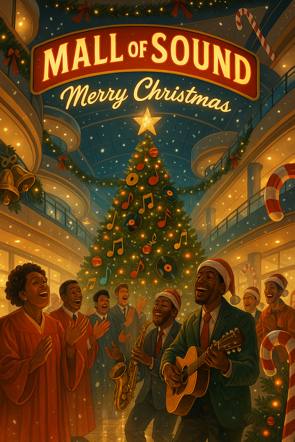 A joyful, high-energy Christmas gospel-boogie anthem that blends 70s soul, modern gospel choir harmonies, and upbeat holiday funk, Start with a playful spoken preacher-style intro over soft organ and jingling bells, Then kick into a toe-tapping groove with claps on the 2 and 4, warm bass guitar walks, funky electric piano, sleigh bells, and bright horns, Vocals should feel soulful, lively, and full of Christmas cheer, Include a powerful gospel choir that responds to the lead singer with call-and-response hype, Add a festive breakdown with handclaps, ad-libs, and joyful shouts, Keep the vibe uplifting, soulful, and full of celebration, Big energy, big smiles, full holiday joy