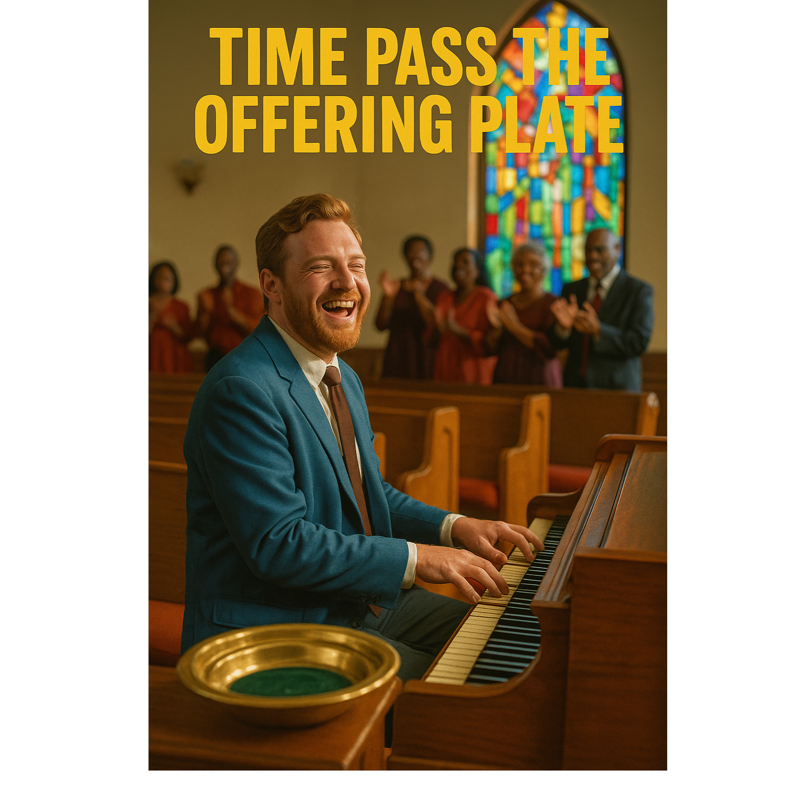 Live church vibe — claps, crowd murmurs, stomp-the-floor energy, A joyful, comedic undertone with pure heart, Big smiles, Pure uplift, Mix: