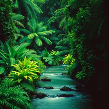 jungle, melodic female vocals, jungle river ambiance, energetic drum and bass, driving rhythm, hypnotic and bright, bright, cinematic, hypnotic, african flute and percussion motifs, female vocals