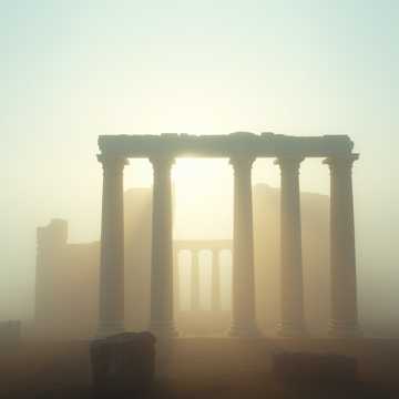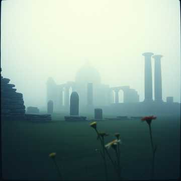 dramatic brass, low strings, choir, dark and ancient atmosphere