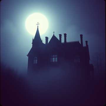 Full orchestral gothic horror overture with grand pipe organ, dark brass, deep strings, and ominous percussion, Slow build from low strings into dramatic crescendos, evoking a cursed Victorian manor at midnight, The tone is ominous, majestic, and full of tension, with sudden silences and bursts of power