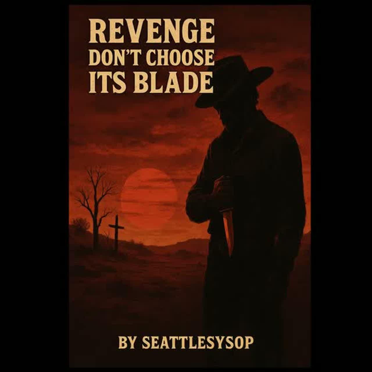 Dark country, ballad with outlaw western vibes, Deep male gritty vocals, raw and emotional, singing about revenge and regret, Acoustic guitar strumming sets the base, slow steady drums, haunting slide guitar fills, and low fiddle lines weaving in for tension, Subtle bassline underneath, Sparse verses that open up into layered harmonies in the chorus, Gritty and cinematic, like a campfire tale at sundown, Southern Rock elements, Echos, Background Singers, Stereo, Dolby Atmos, Dark vibe, Good Rock Drums