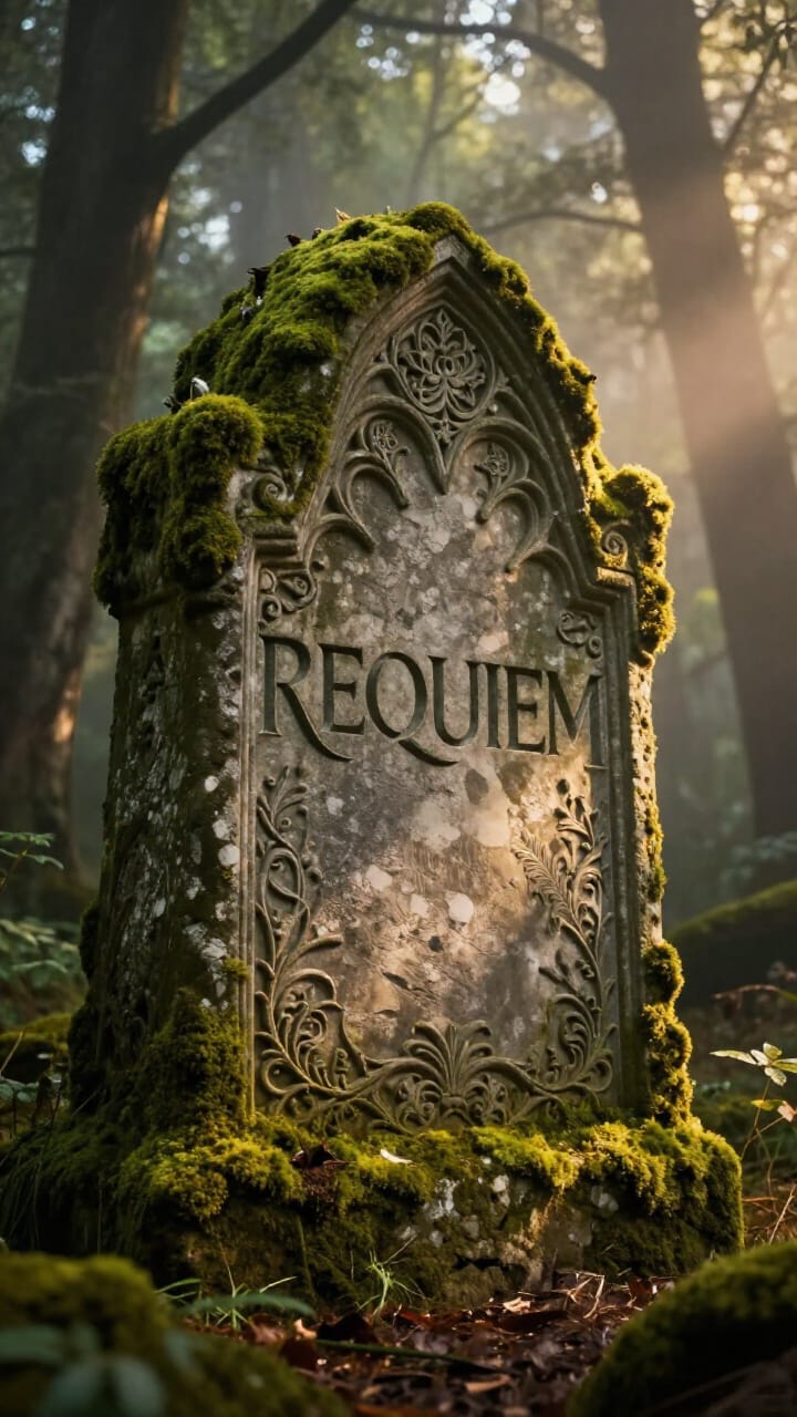A cinematic, ambient, and melancholic instrumental piece in a minor key, featuring a slow tempo of approximately 60 BPM, The primary instrumentation includes a sustained, ethereal pad synth providing a rich harmonic bed, complemented by a prominent, resonant bell-like synth melody, A deep, sustained bass synth provides a foundational low end, The arrangement is sparse, emphasizing the atmospheric qualities and the melancholic melody, The production features a wide stereo image with significant reverb on all instruments, creating a spacious and distant feel, There are no percussive elements or vocal tracks, The chord progression is slow-moving, focusing on sustained minor chords and suspensions, contributing to the overall somber mood, The melody is simple and repetitive, played in the upper register of the bell synth, with long, sustained notes that allow the reverb to decay naturally