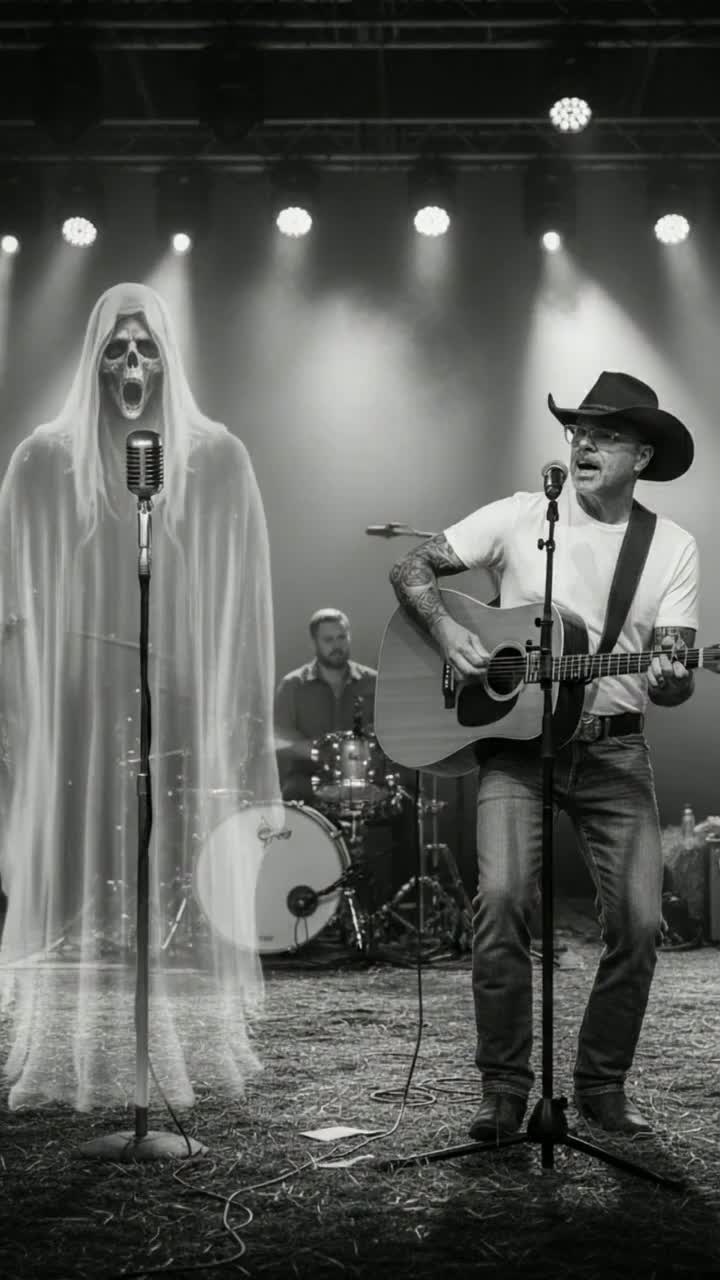 Kick off with stadium crowd noise and lively stage banter over a stomping drum intro, Launch into high-energy Southern Rock and Outlaw Country, blending electric guitar riffs with harmonica and Celtic-tinged fiddle lines, 50s slapback echo saturates bariton male and strong angel female duet vocals, Guitar and drum solos take turns erupting, all while crowd response fuels the live vibe, Each section surges with call-and-response, dynamic interplay, and interwoven Celtic melodies for a rousing, genre-blending performance