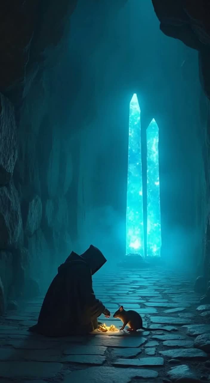 [style: Epic Psychedelic Prog Rock, Cinematic Fantasy] [mood: Mysterious, Adventurous, Thoughtful, Triumphant] [atmosphere: Ancient Castle, Deep Dungeon, Mystical, Growing Tension] [instrument: Deep Pulsing Bass, Clean Arpeggiated Electric Guitar, Mellotron Flutes, Grand Piano, Tympani, Orchestral Strings, Glockenspiel, Choir Pads, Distorted Guitar Riffs, Tambourine] [bpm: 72 - builds to 108] [vocal: Deep Male Baritone, clear enunciation] [sound effects: Dripping water, faint mouse squeak, door creak, ambient dungeon echoes]