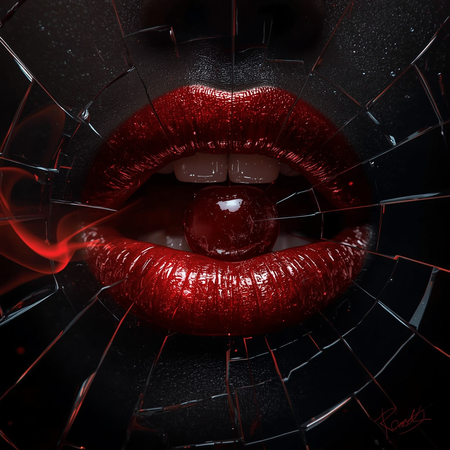 Visual Atmosphere: crimson lips, sugared shards, burning rain, stormlight collapse, branded skin