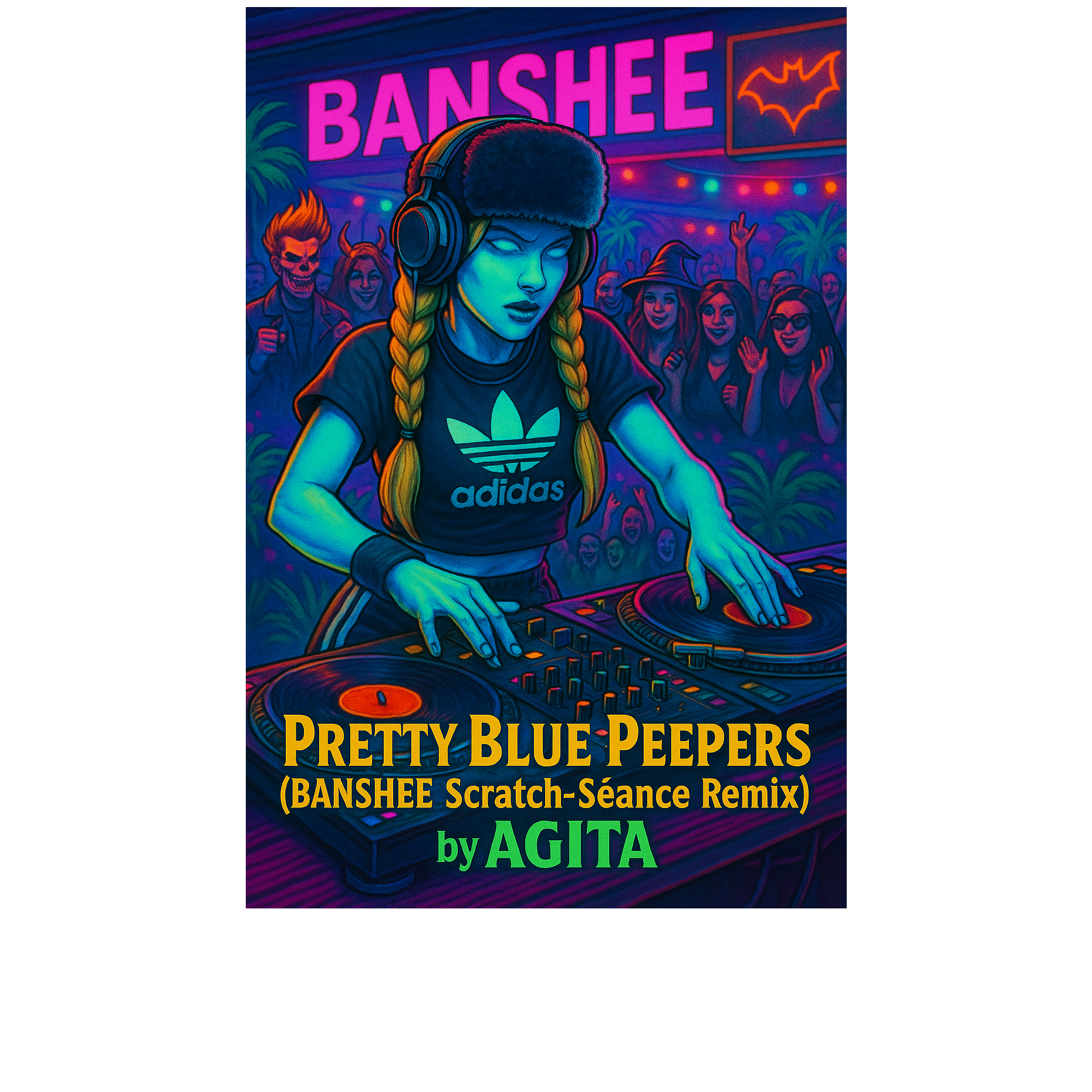 horror-punk × metalcore remix performed by an undead turntablist known as The Banshee, 105→190→60 BPM energy arc, Live-mix feel with aggressive DJ scratching, vinyl backspins, and crossfader stabs interacting with distorted guitars and blast-beat drums, Ghost-like scratch phrases trade call-and-response with the vocalist, slicing through the mix like spectral dialogue, Vinyl crackle, needle drag, and record reverses punctuate transitions, Turntable solo sections between breakdowns, Industrial bass pulses, reversed organ tones, AM-radio static, and supernatural feedback form a cinematic séance-like soundscape, Emotional, theatrical, and performed as a haunting conversation between band and decks—every drop dripping with haunted vinyl energy