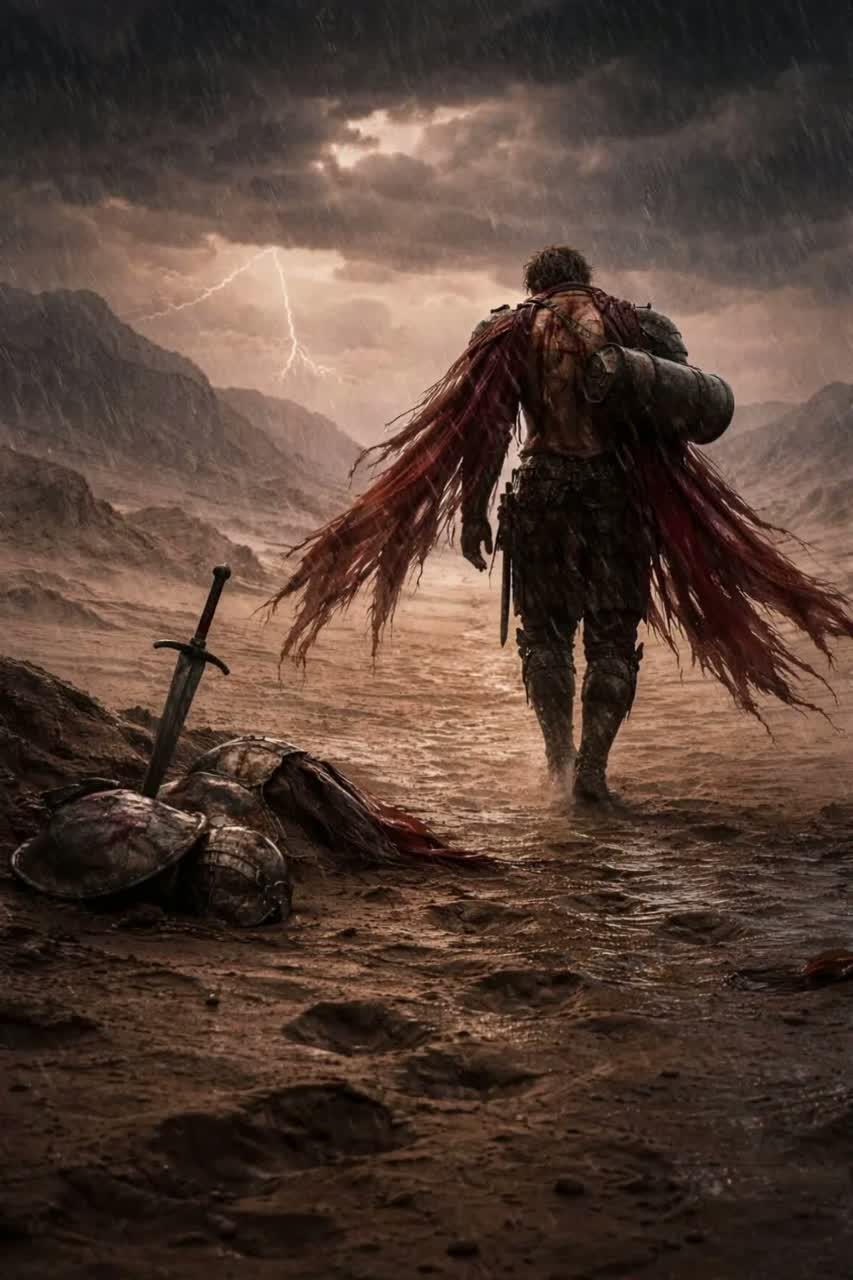 cinematic symphonic folk with rock elements, minor key, ballad, Nordic flute intro, Nordic flute solo, slow tempo about 65 BPM, alto female singer, Nordic vocals, slow and mournful chorus, cinematic choir, epic thunderous drums, Viking theme, lament for the fallen