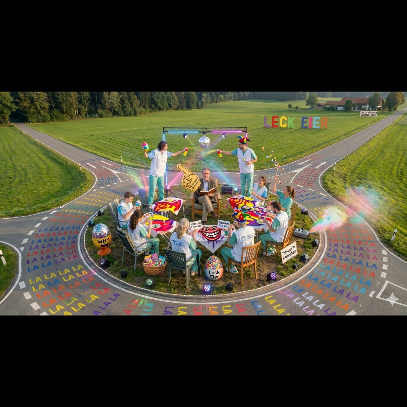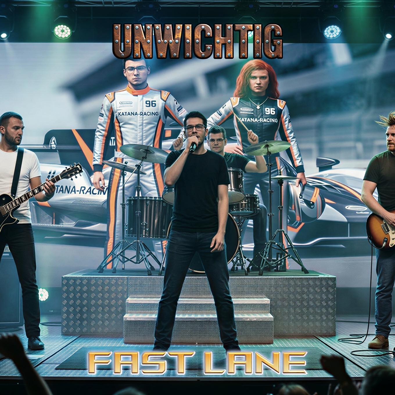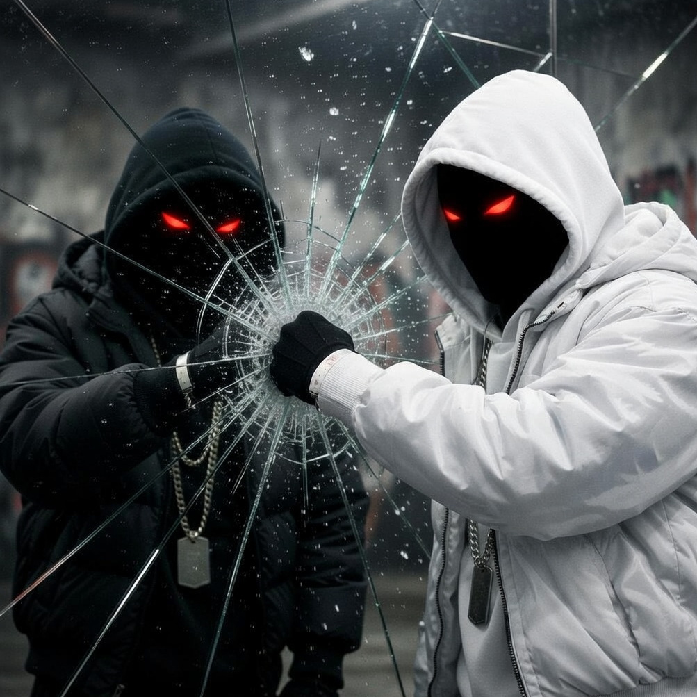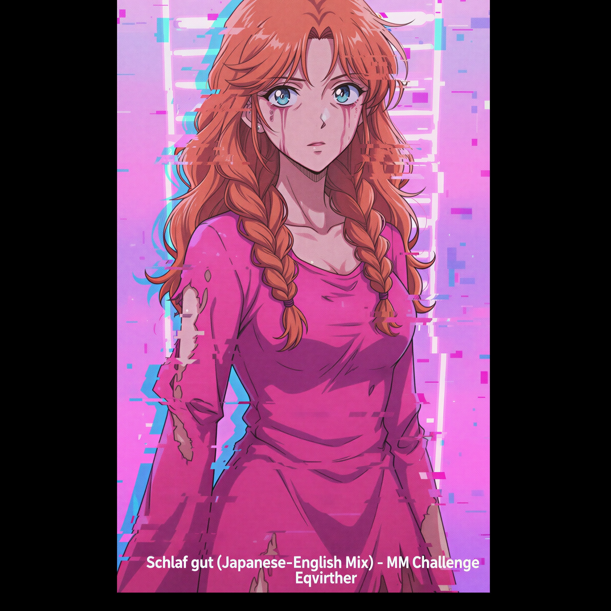 Opens with pounding industrial percussion and layers of distorted synths, merging into palm-muted death metal guitars, Deep, harsh male Deutschrap vocals battle cut-up, chaotic Vocaloid female screams in the verses, Chorus explodes into mechanized blast beats, dissonant riffs, and glitchy vocal interplay, heightening the sense of sonic insanity, The bridge features unsettling industrial noise layers, abrupt breaks, and stuttering effects before crashing back into a brutal, relentless finale