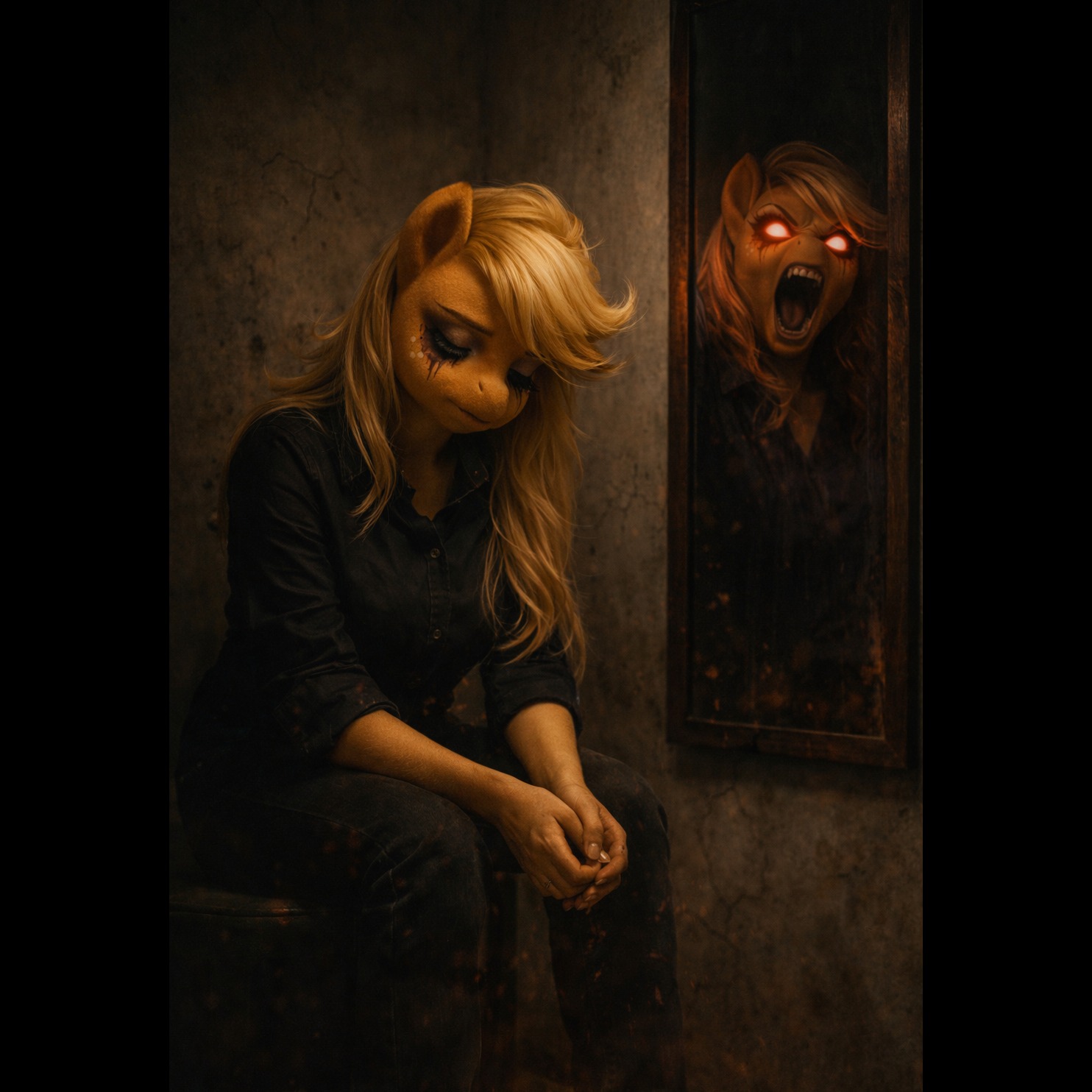 Vocals: female vocals, deep, raspy, hoarse, breathy, cracked tone, emotionally unstable delivery, fragile verses, strained powerful chorus, natural voice breaks, imperfect, raw, intimate close mic, slightly off at times, no polish, no clean pop tone, no autotune feel