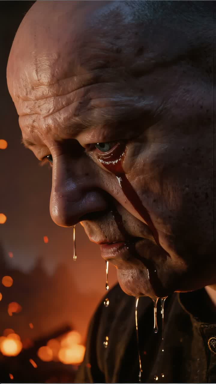 Ultra-violent Cinematic Deathcore × Melodic Electronicore × Industrial Glitchcore × DnB, 190 BPM, Vocal focus: relentless guttural growls + shriek layers, rapid-fire patterns, stacked octaves for sheer impact, Riffs: downtuned chugs, pinch-squeal stabs, brutal stops, slam hits; drums: blast-run bursts, machine-gun kicks, half-time breakdowns, Still melodic: cathedral choir pads, minor-key supersaw hooks, string/organ lifts, haunting lead motif that returns each chorus, Glitch: stutter edits, bitcrush snarls, tape-stops, granular impacts, sudden silence voids, Arc: cold intro → escalating verse → monstrous chorus → rupture bridge → final chorus, hard cut, ‑male