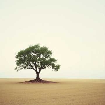 A solitary tree on a wide horizon. Wind, earth, and light meet in one place. This image represents STRUCTURE ZERO: structure, balance, and the moment scattered signals become music.