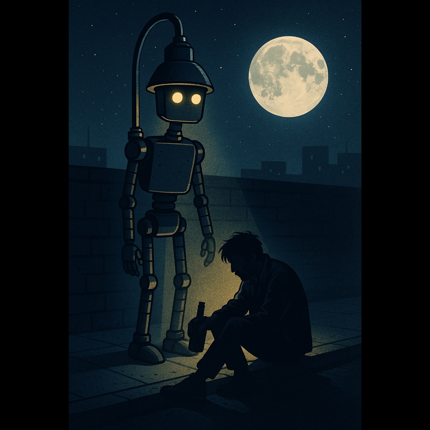 Create an upbeat robotic electro-pop song with humorous but emotional undertones, It tells the story of a drunk man who believes he's befriended a robot on the street, The robot speaks in a made-up robotic language, The mood is fun and quirky, with glitchy sound design and danceable beats