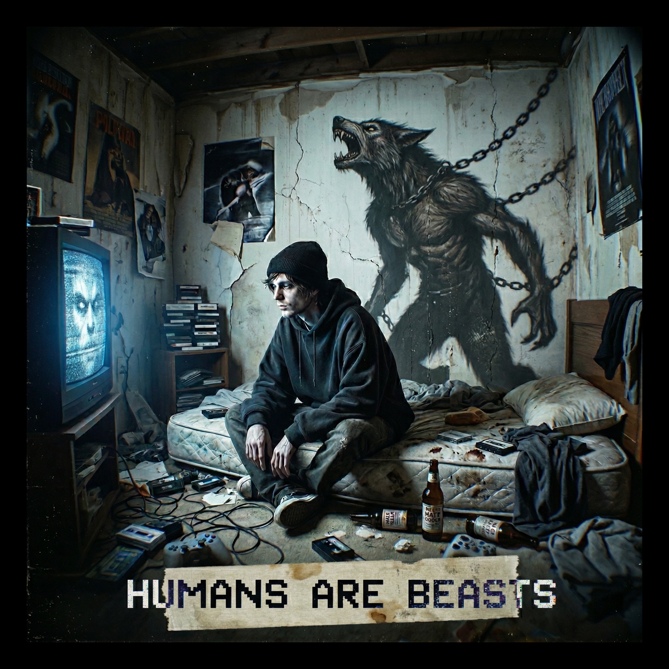 [Style: Dark Memphis Trap, Phonk, 1990s Lo-fi][Key: F Minor][Tempo: 75 BPM][Mood: Grim, Ominous, Trippy, Aggressive][Drums: 808 Distorted Bass-as-Kick; sharp cowbell 1, 5kHz; crunchy snare; 1/16 hi-hat rolls; trippy 808 glides; 60Hz punch focus][Instruments: Ominous bells; high-pitch theremin short bursts; long delay on theremin; dark cinematic pads; no acoustic instruments][Vocals: In English; slow delivery; articulated words; low-pitched phonk rap; grainy texture; occult chants in background][FX/Foley: Heavy distortion; tape hiss; distorted theremin bursts; sidechained white noise; -15 dB vinyl crackle][Mix: front bass; HPF 40Hz; LPF 16kHz; shimmer focus 3k-6k Hz; heavy saturation; dark cavern reverb on bells][Master: Soft clip; target -9 LUFS for club impact; -0, 3 dBTP][Gritty Lo-fi Texture], ‑spoken