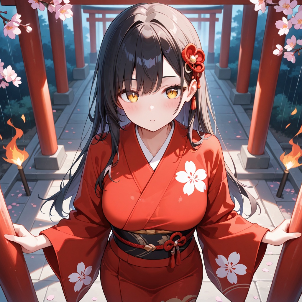japanese, 和風, [Koto, Shakuhachi, Japanese drum], technical sounds, female voice, female trio vocal, majestic sound, cool and dark, j-rock, Japanese, Despair, Rain, May, cool atmosphere, flower, ephemeral, clear voice