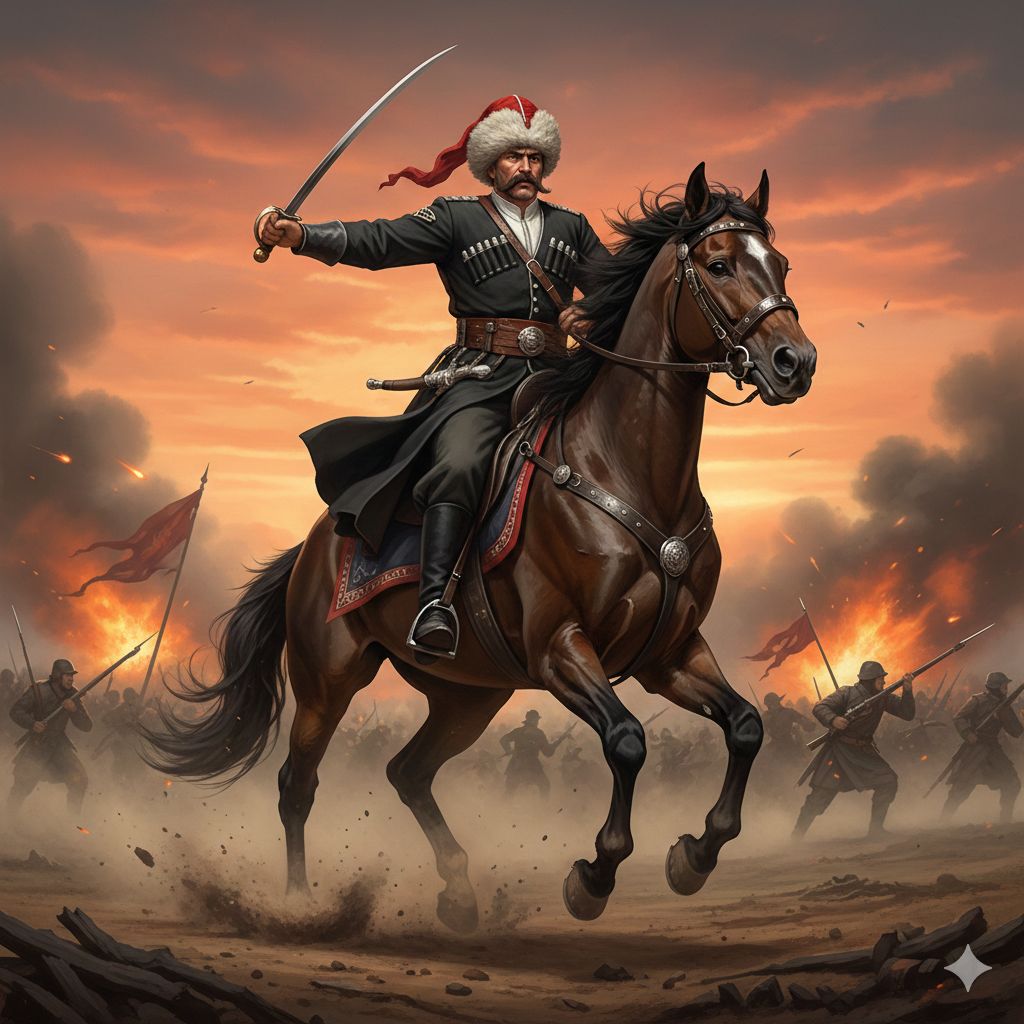 [Instruments: **Dominant Bandura/Violin Melody (Nostalgic)**, Cello, Military Drums, Distorted Guitar (for power), Tuba/French Horn (Heroic Brass)]